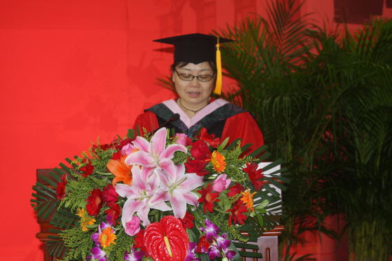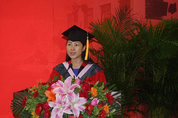 陈文娟副教授作为导师代表对毕业生寄语。她以满含深情的话语回忆了与毕业研究生相处过程中的精彩瞬间和感人场面 ,对毕业生提出了三点希望:积极投身社会的磨练场;站在道义的高度上;爱护马院的名誉。