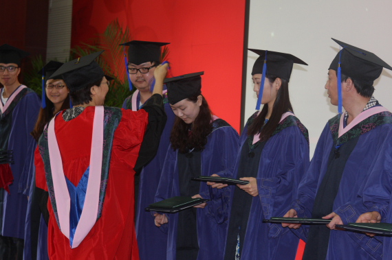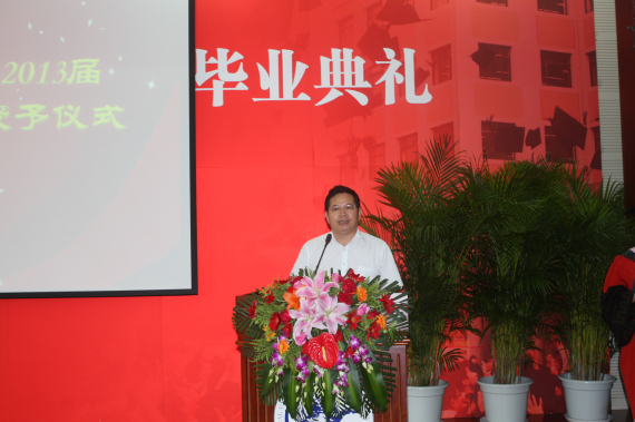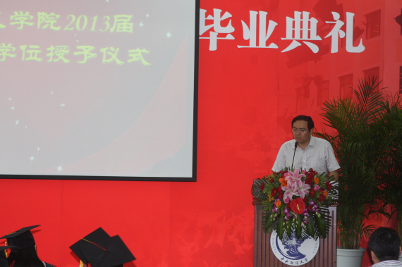 2012级博士生方来武同学代表在校生发表感言,向2013届全体毕业生送出最诚挚的祝福,表达了在校生将继续传承学兄学姐们的优良学风传统的愿望,即坚持梦想,勇担责任;心系学院,心怀感恩;以勤为径,以苦作舟,最后祝愿毕业生在未来的日子里大展宏图,祝愿学院硕果累累,再书华章。 学院副院长冯秀军教授为硕士学位获得者拨转流苏、颁发毕业证和学位证书。