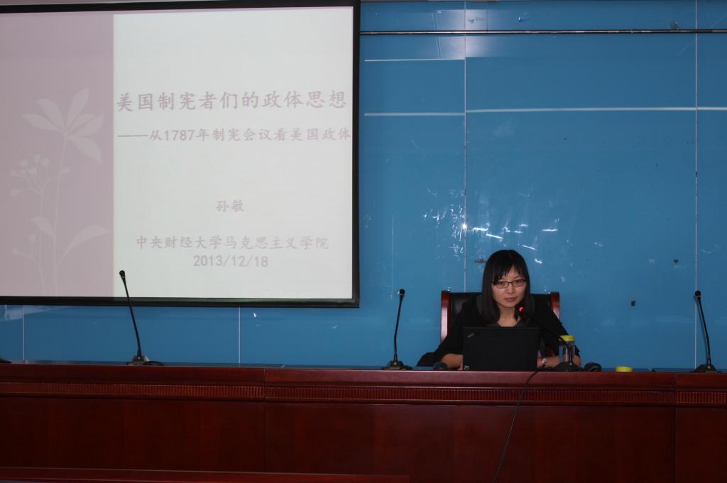12月18日,由Beat365官方网站举办的第三期学术沙龙活动在学术会堂702举行。本次学术沙龙的主题是“美国制宪者们的政体思想——从1787年制宪会议看美国政体”,由青年教师孙敏主讲,副院长哈战荣主持,全院师生约50余人参加了本次活动。