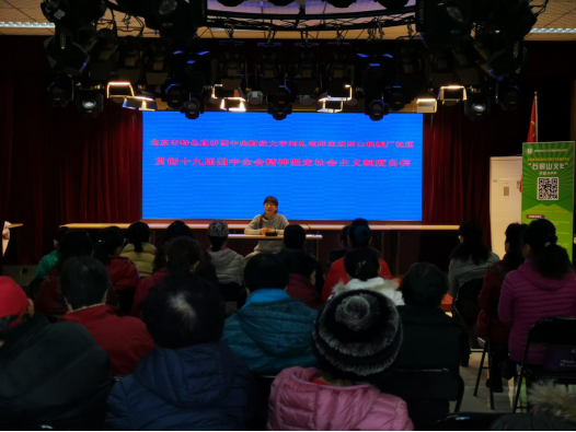12月11日上午9:30,Beat365官网教师赵付科教授到石景山区八角街道杨庄中区社区服务站为该街道社区群众作了题为《新时代“中国之治”》的宣讲报告,该社区100余名群众聆听了报告会。
