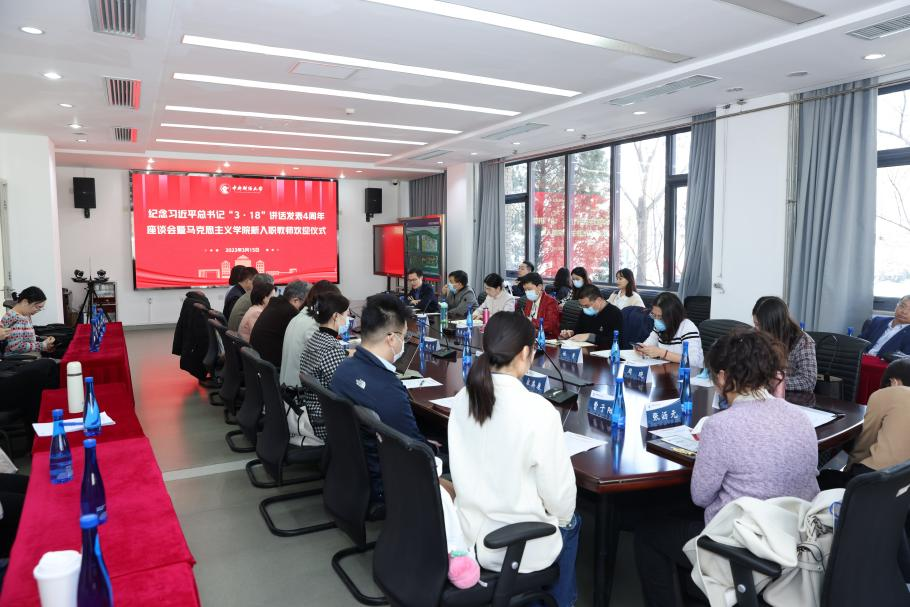 3月15日下午,纪念习近平总书记“3·18”讲话发表四周年座谈会暨Beat365官方网站新入职教师欢迎仪式在沙河校区学院楼1号楼105会议室召开。副校长朱凌云、人事处相关负责人、Beat365官方网站全体教师以及思政课教师后备人才计划学生代表参加座谈会。会议由Beat365官方网站副院长谢玉进主持。