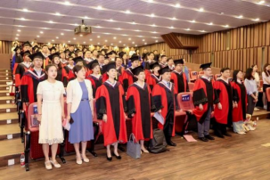 接下来进行研究生学位授予仪式。王静副院长宣读学院研究生毕业及授予学位文件。学院院长、学院学位评定委员会主席黄刚教授为全体获得硕士学位、博士学位的毕业生正冠拨穗,授予学位证书,颁发毕业证书。