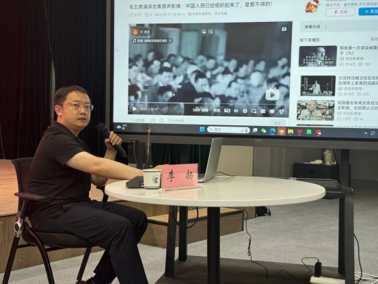 此外,在校内训练期间,学院李扬副教授和满梦启围绕广场合唱团演唱的经典抗战曲目,开展了生动的思政课。4名马院学子作为学校成立的“弘扬伟大抗战精神”青年红色领学示范宣讲团的首批宣讲员,面向学校参加广场合唱团师生开展了“永不忘—歌声里的回响”专项师生思政主题分享。