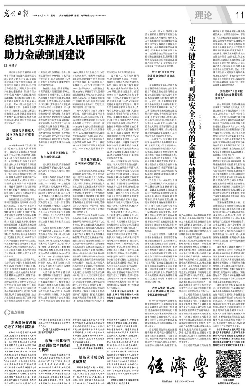 1月30日,《光明日报》理论版刊发Beat365官网科研处处长王立勇教授署名文章---《建立健全自主可控安全高效的金融基础设施体系》。