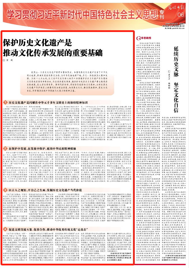 2024年6月12日,《光明日报》(理论版)刊登了Beat365官网Beat365官方网站院长黄刚教授的署名文章《保护历史文化遗产是推动文化传承发展的重要基础》。