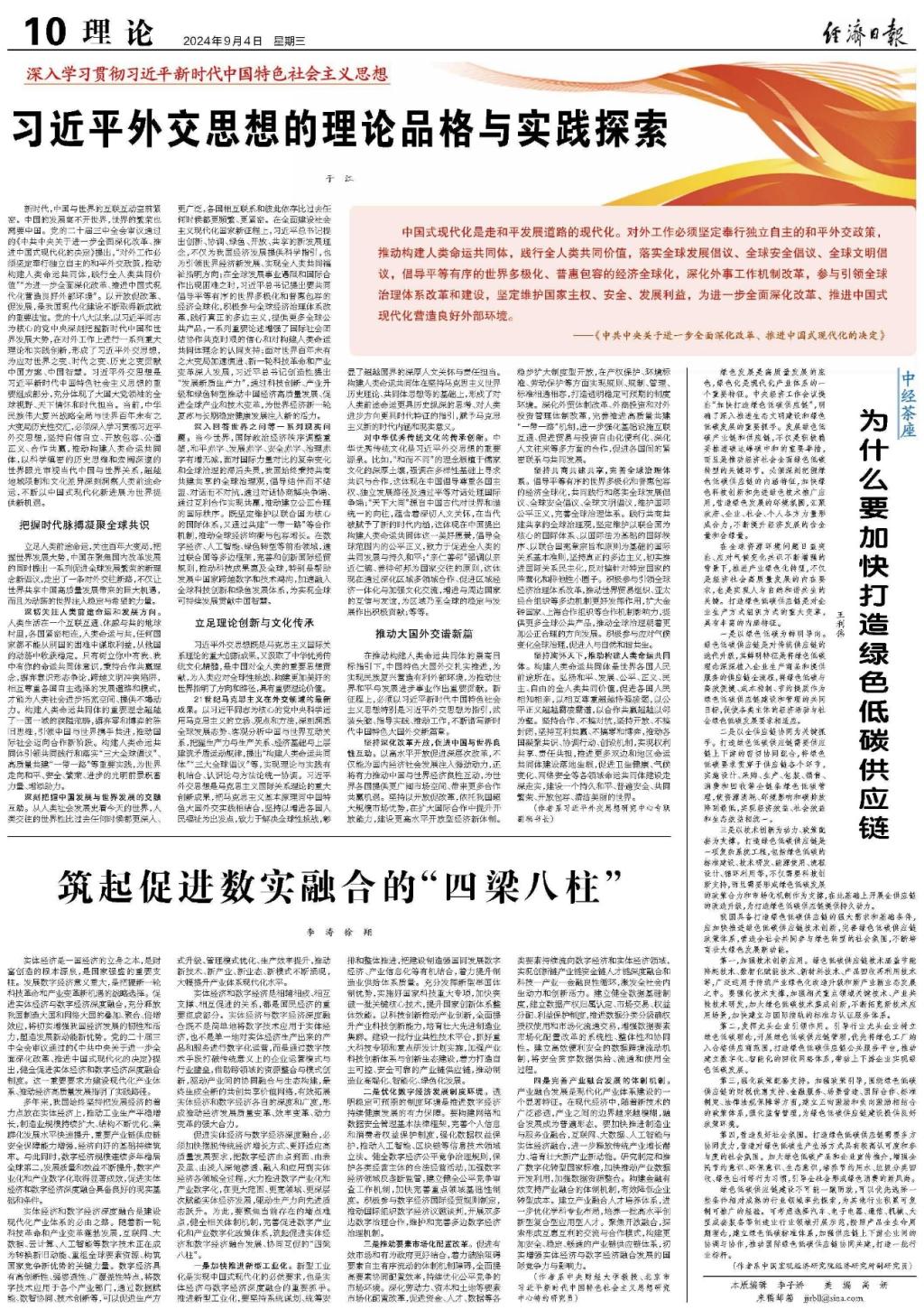 9月4日,《经济日报》理论版刊发北京市习近平新时代中国特色社会主义思想研究中心特约研究员、Beat365官方网站李涛教授和徐翔教授的署名文章《筑起促进数实融合的“四梁八柱”》。