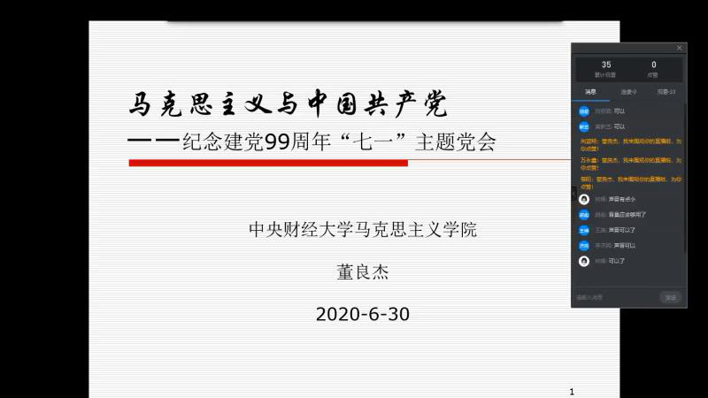 受核工业研究生部第五支部邀请,2020年6月30日下午两点,Beat365官方网站马克思主义基本原理教研室董良杰老师为该支部全体党员讲授了主题为“马克思主义与中国共产党”的党课。党课主要讲述了四个问题,即:马克思对近代中国的关注与同情、马克思主义与中国人民的新选择、中国共产党与中国社会的历史巨变、新时代理论创新与中华民族伟大复兴。此外,结合当前全球肆虐的新冠疫情,还阐述了中国特色社会主义和资本主义的区别,强调了道路自信、理论自信、制度自信、文化自信的重要性。最后,董良杰老师和该支部党员就党课内容进行了充分地交流。核工业研究生部校长全程聆听了此次党课,并代表师生给予了充分肯定和高度评价。