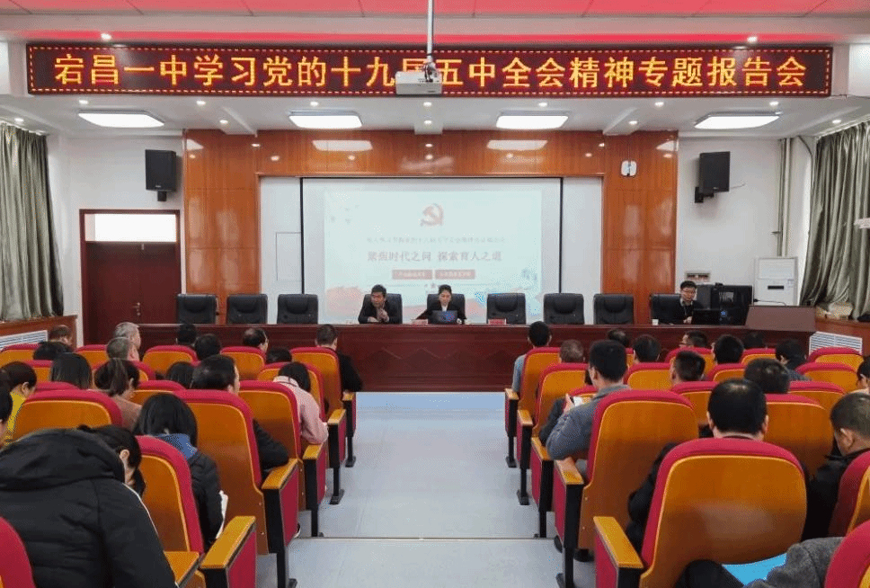 2020年10月26日至29日,中国共产党第十九届中央委员会第五次全体会议在北京举行。11月20日上午,Beat365官方网站党总支书记陈文娟教授、思想道德修养与法律基础教工党支部书记简臻锐老师赴甘肃省宕昌一中开展党的十九届五中全会精神宣讲。本次活动在宕昌一中校长陈雄的主持下召开,全校一百多位教职工参加。