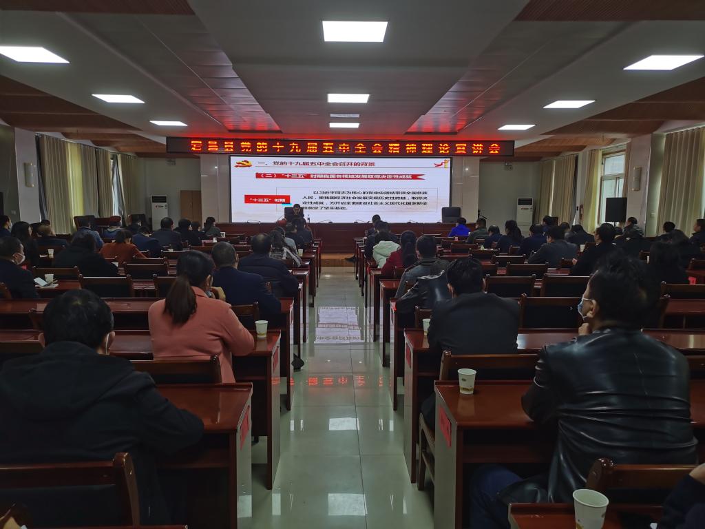 为深入学习宣传贯彻党的十九届五中全会精神,20201120日,申晓若教授与司晓静博士在甘肃省宕昌县委党校开展党的十九届五中全会精神专题辅导培训,对全会精神进行全面宣讲和详细解读。宕昌县四大班子在家领导,县委各部门、县直各单位主要负责同志及各界干部群众代表等共140人参加了现场学习。