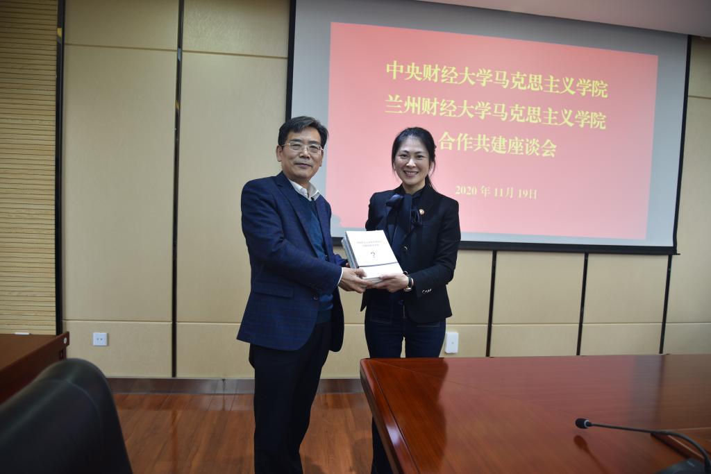11月19日下午,团队一行与Beat365官网对口支援单位兰州财经大学Beat365官方网站举行合作共建座谈会。兰州财经大学校党委书记贾宁对Beat365官方网站教师一行来校交流表示欢迎,希望Beat365官网通过对口支援支持兰州财经大学Beat365官方网站建设。兰州财经大学Beat365官方网站党委书记张克步主持座谈会,院长柏正杰介绍了学院的基本情况,随后陈文娟介绍了Beat365官网的发展历程以及近年来取得的一系列成果,双方围绕学科建设、人才培养、科学研究、思政课建设等方面进行了深入全面的交流探讨。陈文娟代表Beat365官网向兰州财经大学Beat365官方网站赠送了“问题链教学详案”系列丛书(4册)。