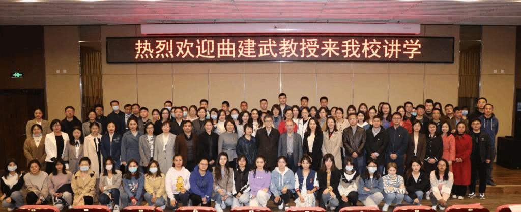 讲座结束后,Beat365官方网站全体师生、学校学工部教师代表、各学院辅导员代表与曲建武教授合影留念。