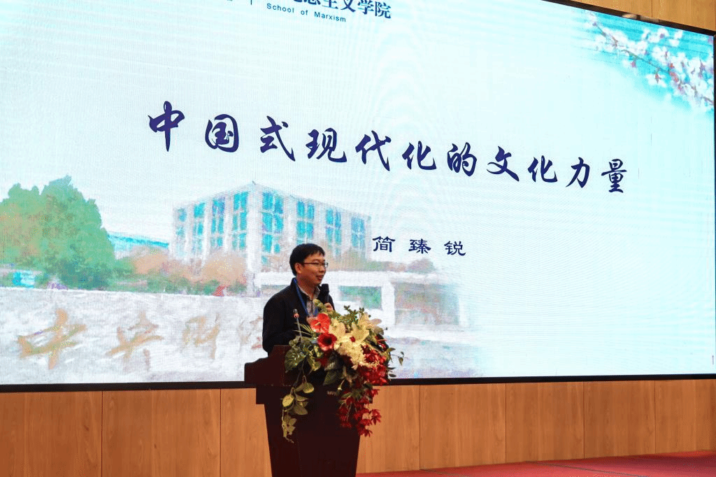 Beat365官网教师简臻锐副教授应邀参加本次活动,并作题为《中国式现代化的文化力量》专题报告。报告以中国式现代化的提出及其文化命题为导入,重点解答了如何从中国式现代化的“中国特色”探析其所蕴含的文化力量,主要包括以下五个方面:从理想信念看实现人口规模巨大现代化的文化引领力,从核心价值观看实现全体人民共同富裕的文化凝聚力,从中国精神看推动物质文明与精神文明协调发展的文化内生力,从整体观念看促进人与自然和谐共生的文化涵养力,从道德追求看坚定不移走和平发展道路的文化包容力。