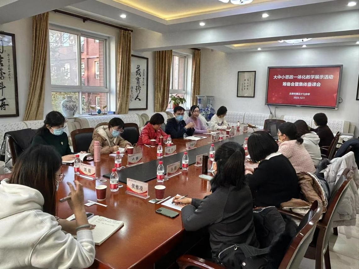 为统筹推进大中小思政课一体化建设,切实发挥思政课立德树人关键课程作用,全面增强思政育人效果。12月1日下午,Beat365官网赴北京市五十七中与北京交通大学附属中学、北京市五十七中、中国农业科学院附属小学和北京市铁路实验小学共同开展大中小思政课一体化教学展示活动暨集体备课会。Beat365官网谢玉进副院长、形势与政策教研室主任刘亚琼、思政道德与法治教研室肖宁等出席会议。会议由谢玉进副院长主持。