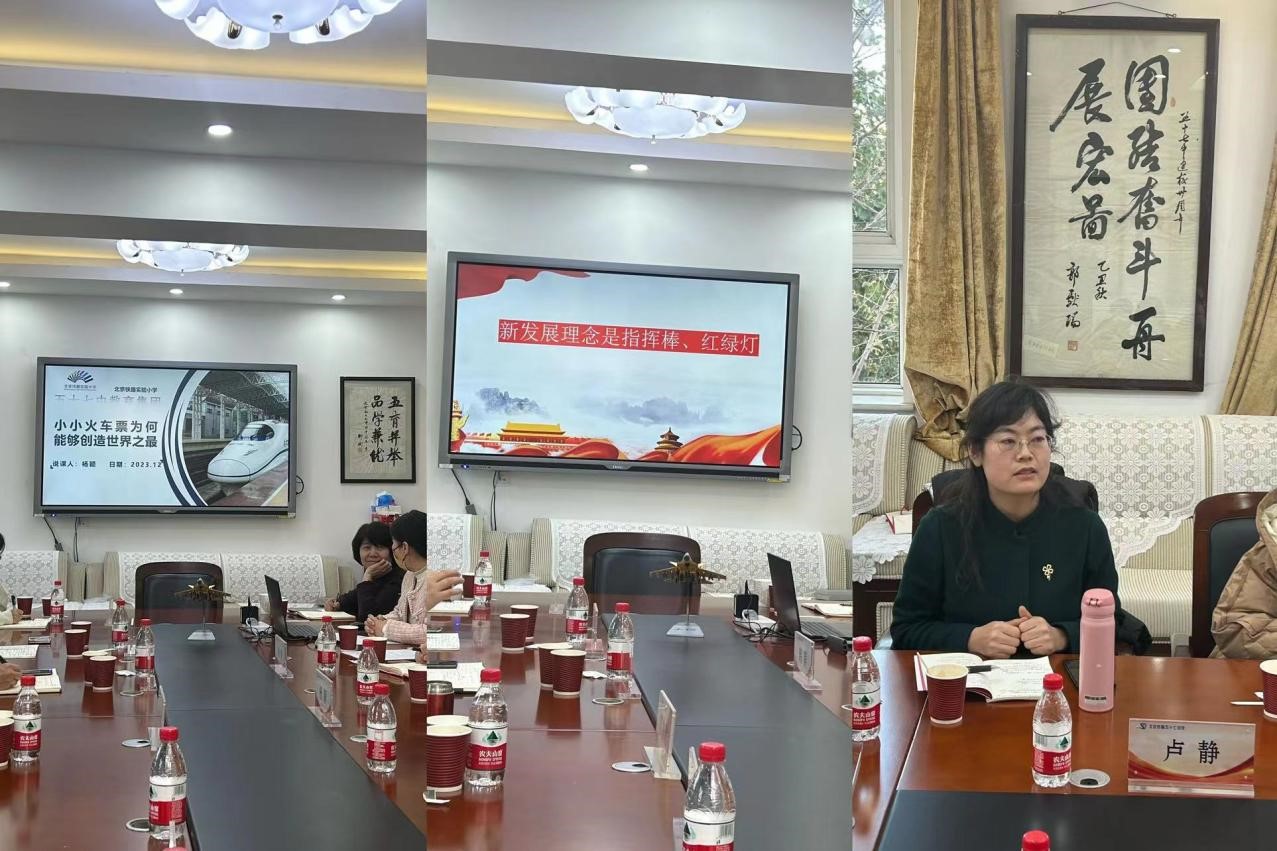 本次备课会围绕落实海淀区教委关于《大中小学思政课一体化共同体合作备忘录》相关建设工作要求,打通学段壁垒,开展大中小思政一体化教学展示活动并就展示内容开展集体备课会。来自中小学的三位老师进行说课展示。北京市铁路实验小学杨颖老师以小小火车票为何能够创造世界之最为切入点,以幸福感、自豪感、敬佩感和使命感为感情线,引导学生认识科技何以兴国;农科院附小孙颖老师则以新发展理念是指挥棒、红绿灯,将情境设计融入教学,带领小学生认识新发展理念;北交大附中卢静老师立足校本特色,系统讲述伟大爱国造桥院士“茅以升”生平,就爱国主义如何入脑、入耳发表见解。